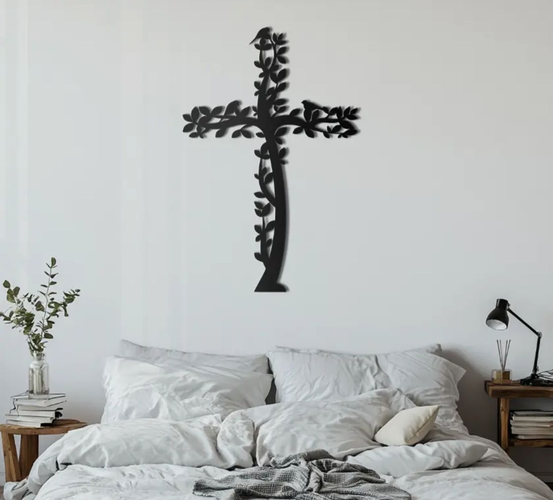 A beautifully crafted blooming cross steel wall art that symbolizes faith, hope, and new beginnings. The elegant floral detailing softens the bold steel design, making it a meaningful yet modern statement piece for bedrooms, living rooms, prayer spaces, or offices.