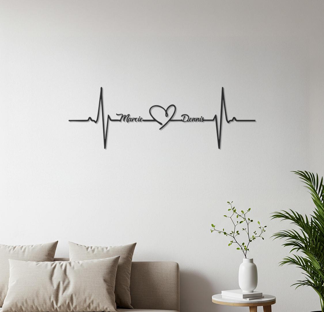 This steel wall art features a stylized ECG heartbeat line forming a heart shape, symbolizing love as the life‑giving pulse that keeps us alive. Perfect for living rooms, bedrooms, or above a fireplace, it adds a romantic, personal touch to any space. It’s also a meaningful gift for anniversaries, weddings, or Valentine’s Day, celebrating the connection and vitality of a cherished relationship. This steel wall art features a stylized ECG heartbeat line forming a heart shape, symbolizing love as the life‑giving pulse that keeps us alive. Perfect for living rooms, bedrooms, or above a fireplace, it adds a romantic, personal touch to any space. It’s also a meaningful gift for anniversaries, weddings, or Valentine’s Day, celebrating the connection and vitality of a cherished relationship.