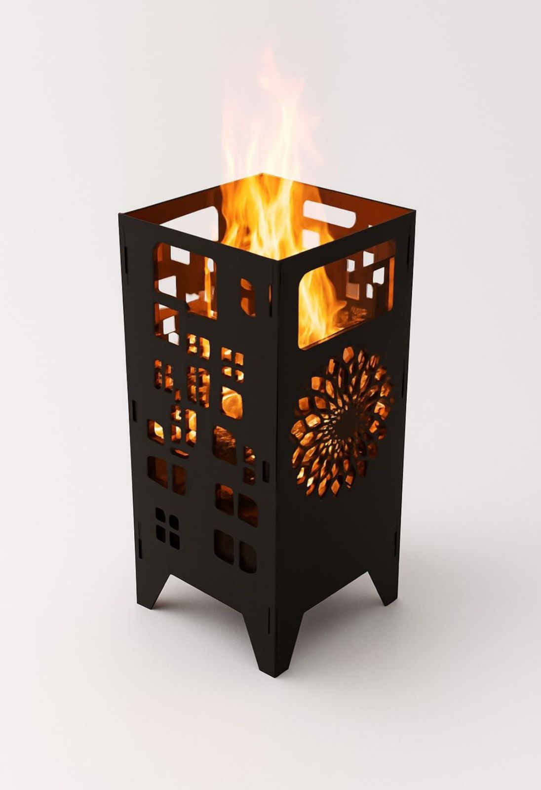 Add warmth and style to your outdoor space with this beautifully crafted steel fire pit lantern. Designed with intricate laser-cut patterns, it creates a stunning glow effect when lit, turning any evening into a cozy and elegant experience. The durable steel construction ensures long-lasting performance, while the compact design makes it perfect for patios, gardens, balconies, or camping trips.